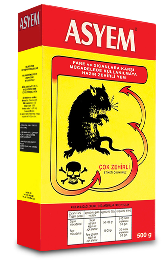 Tesislerimizde her türlü rodentisit ve insektisit imalati yapılmaktadır. Ürün yelpazesinde her türlü aeresol, fare zehiri, likit, tablet, toz, LPG, zehirsiz özel yapışkanlar yüksek teknoloji ile üretilmektedir.