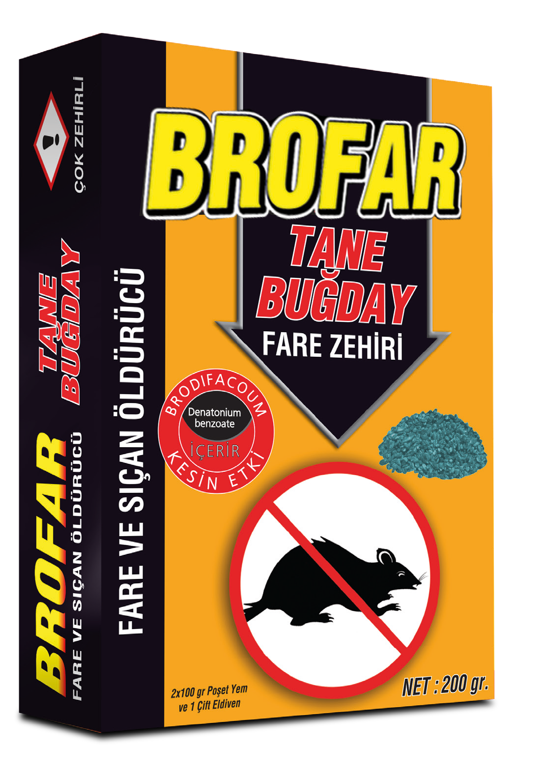 Ürün Adı: Buğday Fare Zehiri Etken Madde: Warfarin Ürün Şekli: Kırık Buğday Yem Ambalaj Şekli: 1 X 250 Gr Marka: